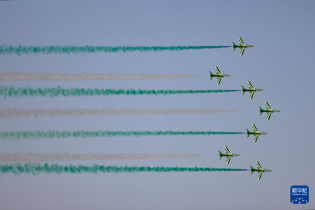 这是9月23日在沙特阿拉伯首都利雅得拍摄的飞行表演。
