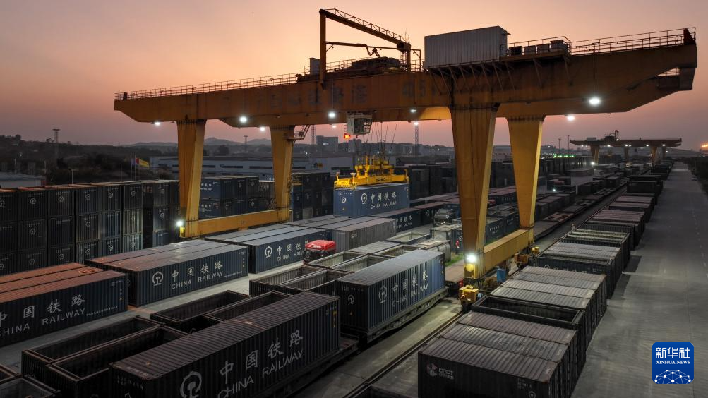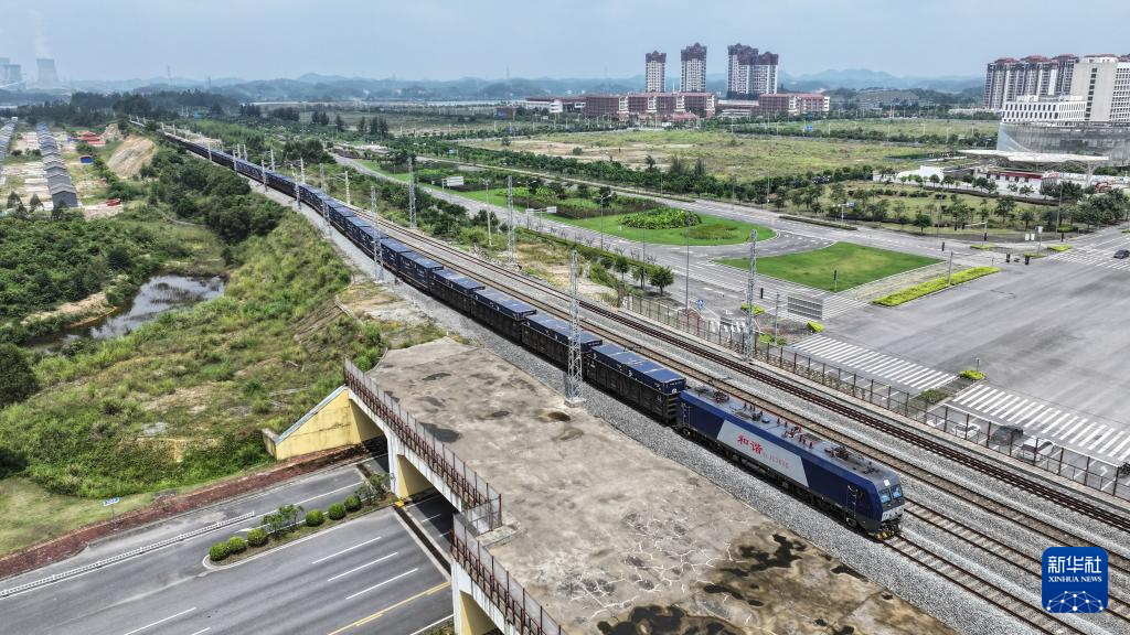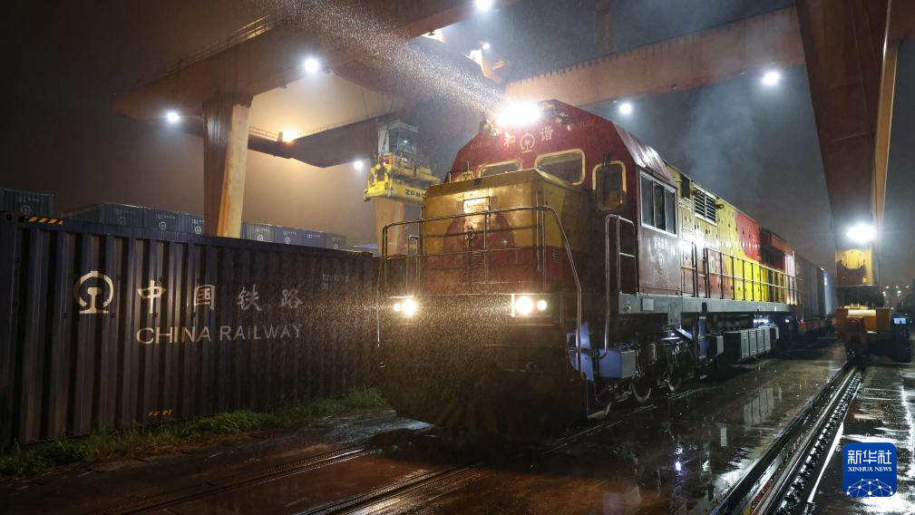 满载化工品、机械设备的中越班列从南宁国际铁路港缓缓驶出,从南宁启程发往越南(2024年3月2日摄)。