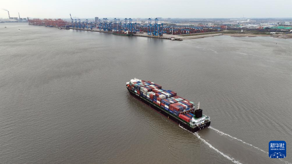 9月23日,一艘海轮驶入钦州港码头(无人机照片)。