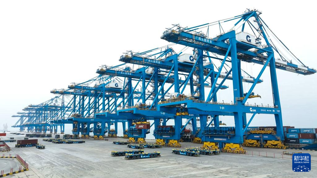 这是钦州港集装箱装卸自动化码头(2024年6月13日摄,无人机照片)。