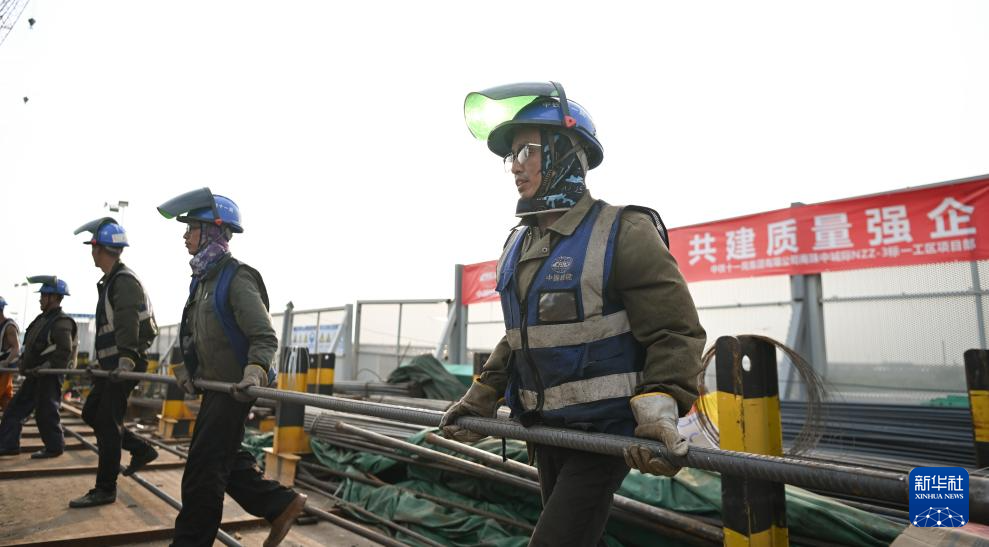 烈日当空,在广州市南沙区南珠中城际铁路中铁十一局的工地上,建设者们挥汗如雨。