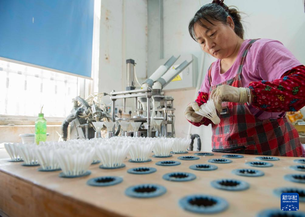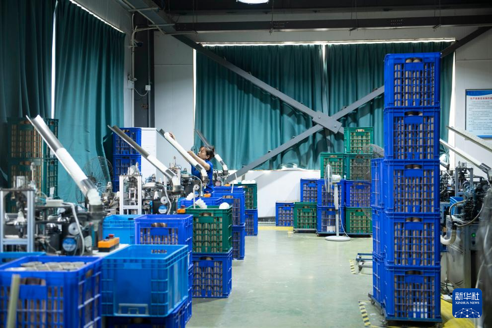 9月24日,在位于安徽省芜湖市无为市的一家体育用品公司,工作人员在羽毛球钩线车间工作。
