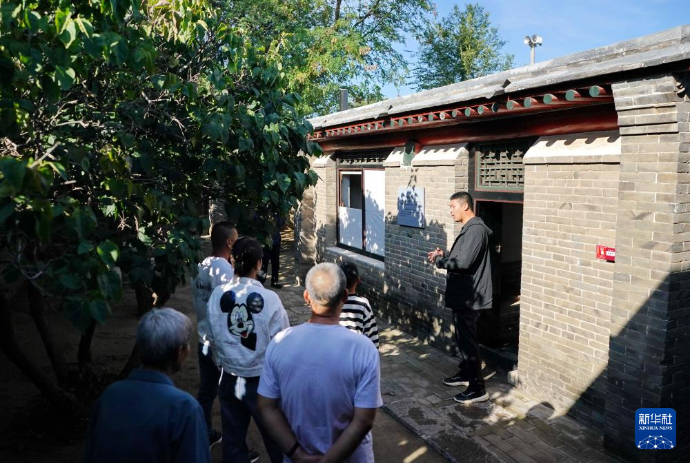 9月22日,赵书明(左三)在河北省乐亭县大黑坨村李大钊故居为游客讲解。