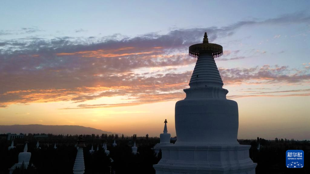 7月11日拍摄的晚霞映衬下的武威白塔寺。