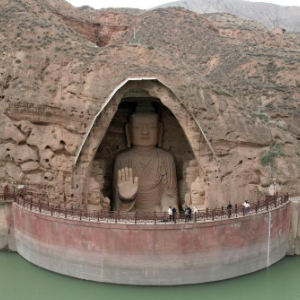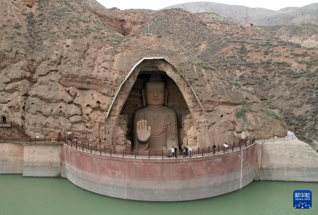 4月20日拍摄的武威天梯山石窟(无人机照片)。