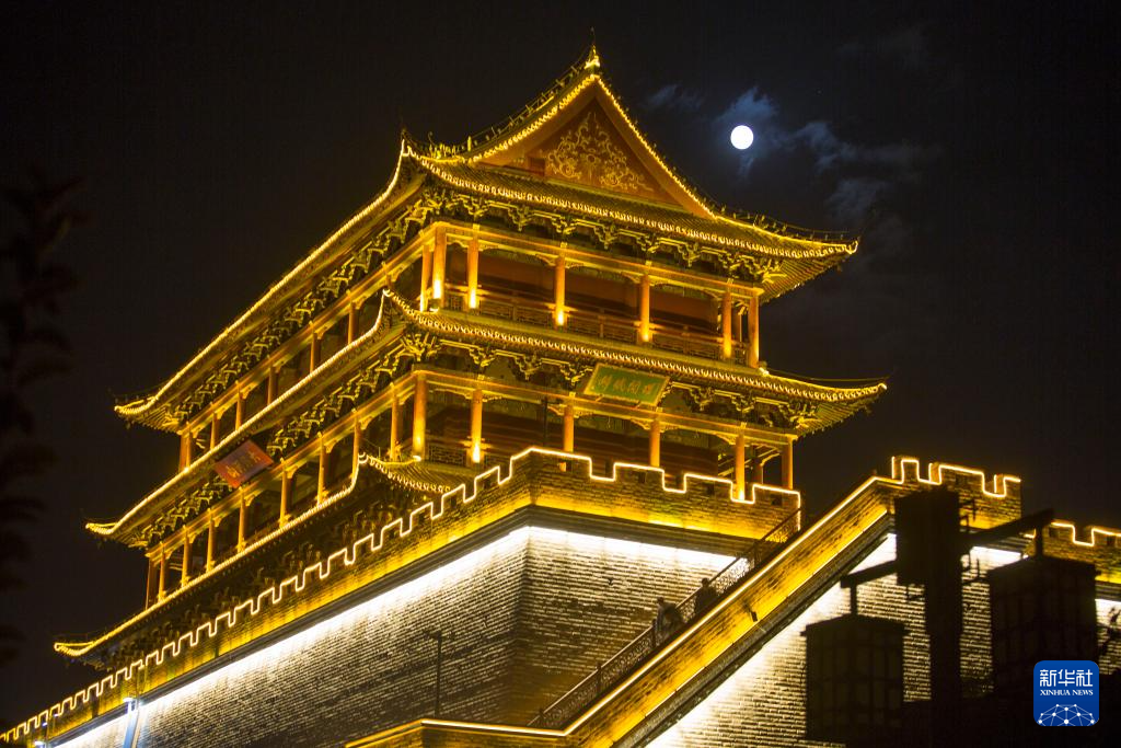 9月17日中秋夜,一轮明月悬挂在武威南城门楼上空。