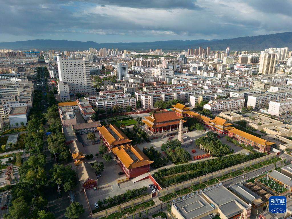 8月16日拍摄的武威鸠摩罗什寺(无人机照片)。