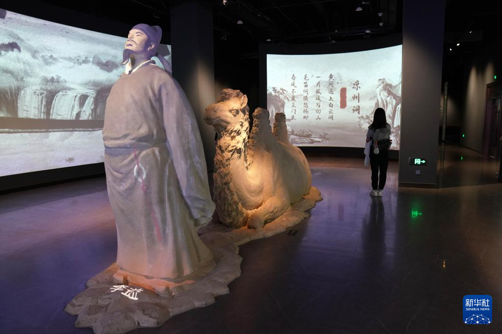 7月9日,讲解员在武威汉唐天马城凉州词馆介绍《凉州词》。