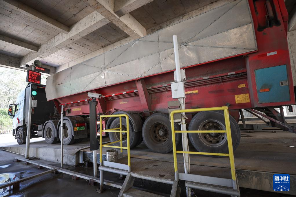 9月25日,货车从海南省定安县的九定岭矿山建筑用花岗岩骨料项目现场完成载货离场。