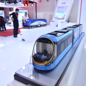 9月26日,在第21届中国—东盟博览会先进技术展区,观众在参观超级虚拟轨道列车模型。