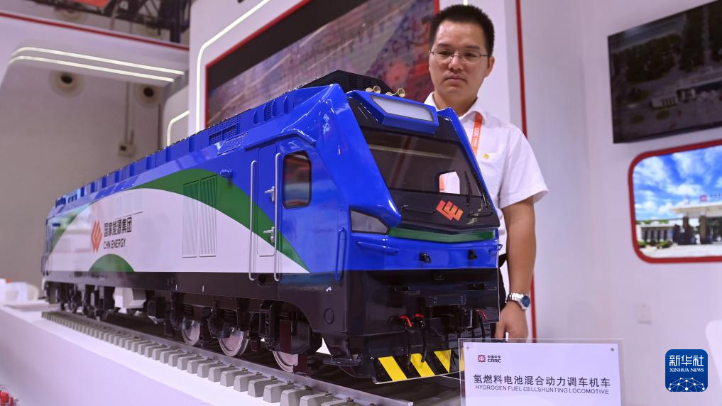 9月26日在第21届中国—东盟博览会先进技术展区拍摄的氢燃料电池混合动力调车机车模型。