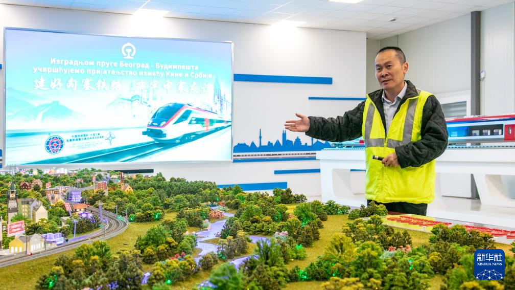 9月16日,在塞尔维亚诺维萨德的匈塞铁路塞尔维亚段项目部营地,段伟介绍匈塞铁路项目情况。