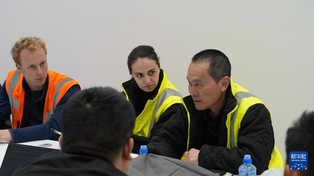 4月24日,在塞尔维亚诺维萨德,段伟(右一)与塞方员工开会。