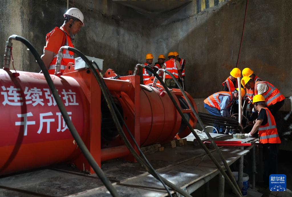 9月26日,施工人员在斜拉桥转体工程现场作业。