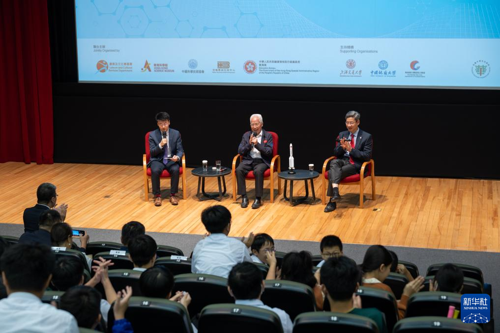 9月27日,龙乐豪(右二)和姚新(右一)回答学生提问。