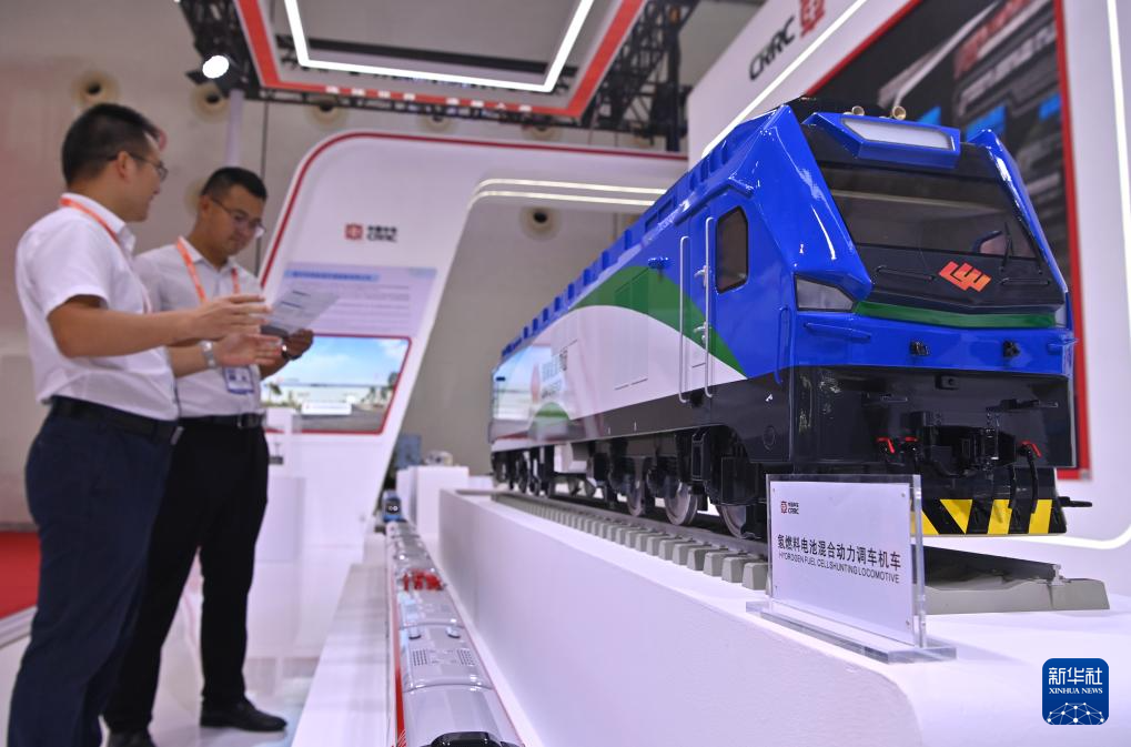 9月27日,人们在中国—东盟博览会上参观氢燃料电池混合动力调车机车模型。