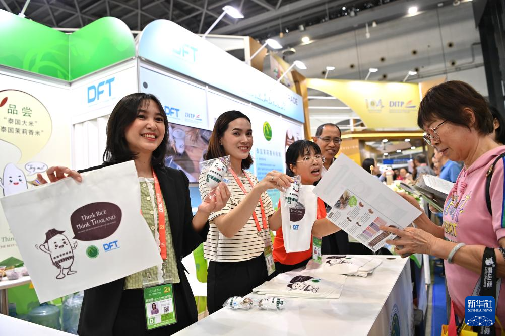 9月27日,客商在中国—东盟博览会泰国商品展区展示泰国绿色农产品。