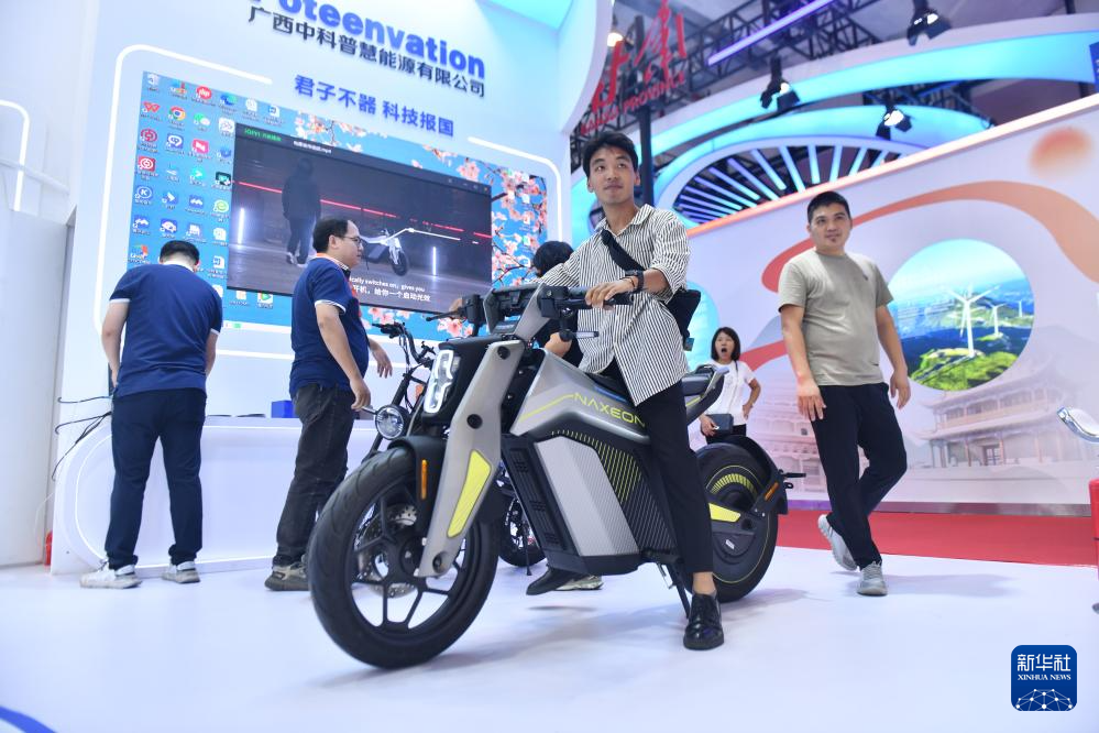 9月27日,观众在中国—东盟博览会上体验一款电摩。