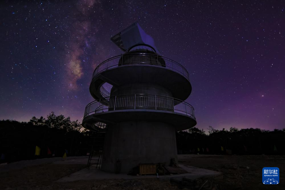 已经完成首吊的核心阵试验样机矗立在星空下(9月25日摄)。