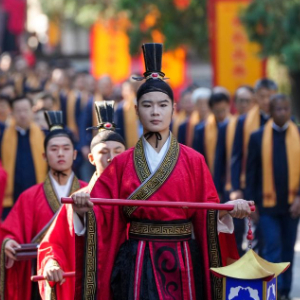 9月28日,在2024甲辰年公祭孔子大典上,演职人员引导参祭嘉宾步入曲阜孔庙。