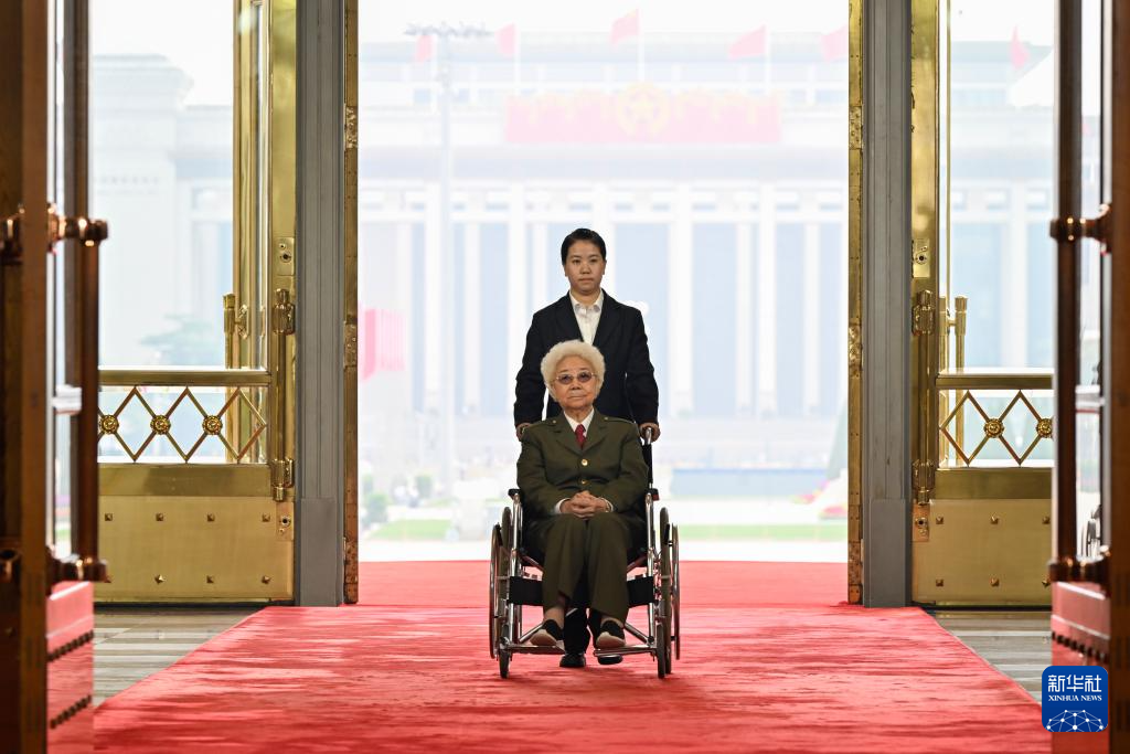 9月29日,“共和国勋章”获得者黄宗德抵达人民大会堂。