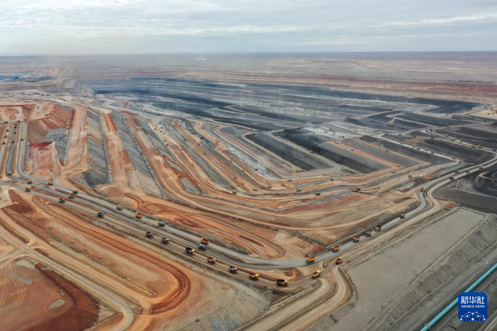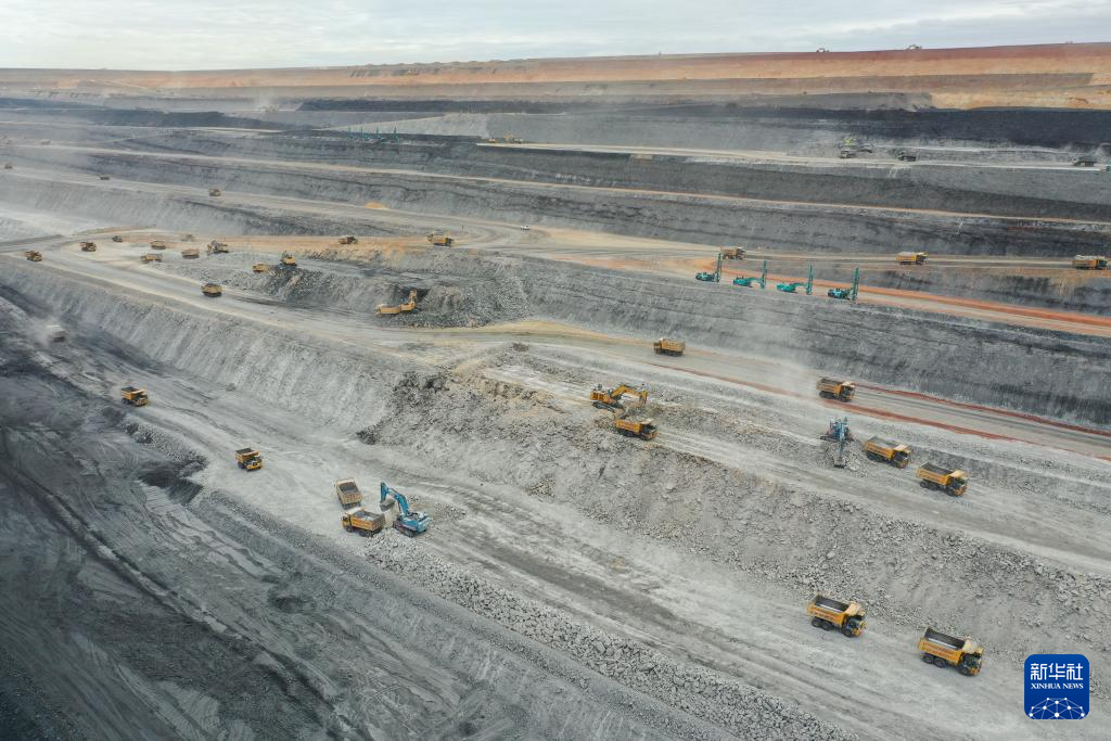 这是在国能新疆红沙泉能源有限责任公司红沙泉一号露天煤矿拍摄的作业现场(9月27日摄,无人机照片)。