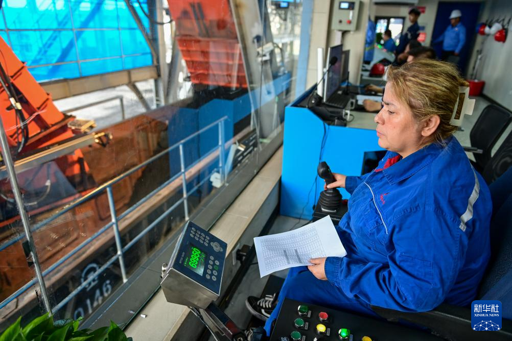 在国能新疆化工有限公司,工作人员驾驶机械运送袋装聚乙烯产品(9月26日摄)。