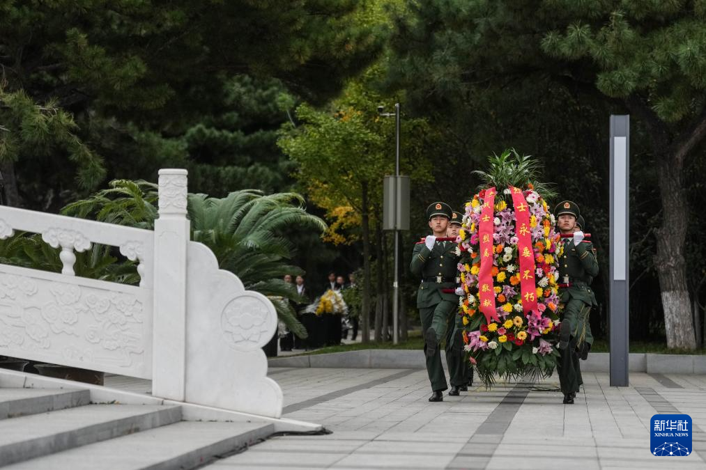 9月30日,辽宁省暨沈阳市向烈士纪念碑敬献花篮仪式在沈阳抗美援朝烈士陵园举行。