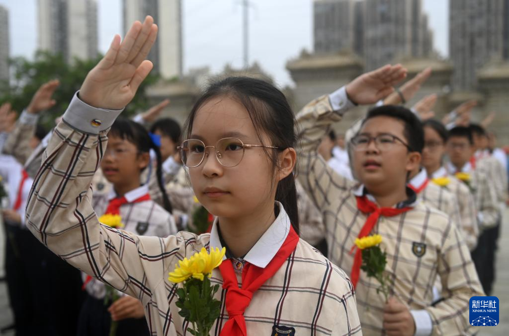 9月30日,在广西壮族自治区烈士陵园,少先队员参加纪念活动。
