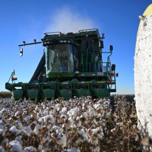 金秋时节,新疆生产建设兵团1100多万亩棉花陆续进入采收季。田间“白浪”翻滚,机器轰鸣,团场职工抓住晴好天气,收获棉花。