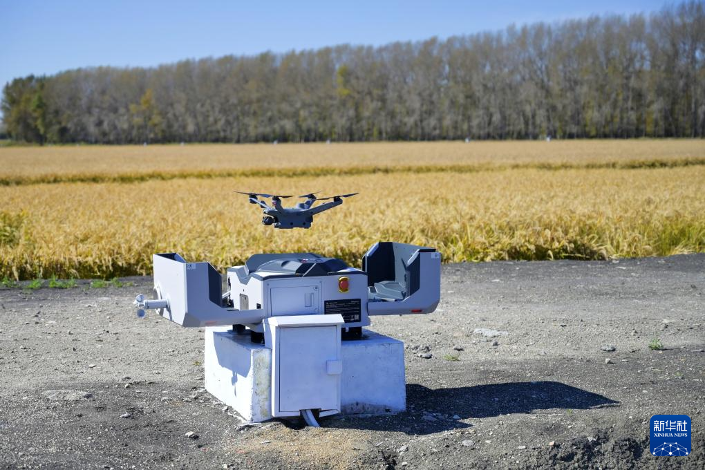 9月28日,在位于双鸭山市的中国科学院北大荒友谊现代农业实验站,完成智能巡田任务的无人机在定期自动返航。