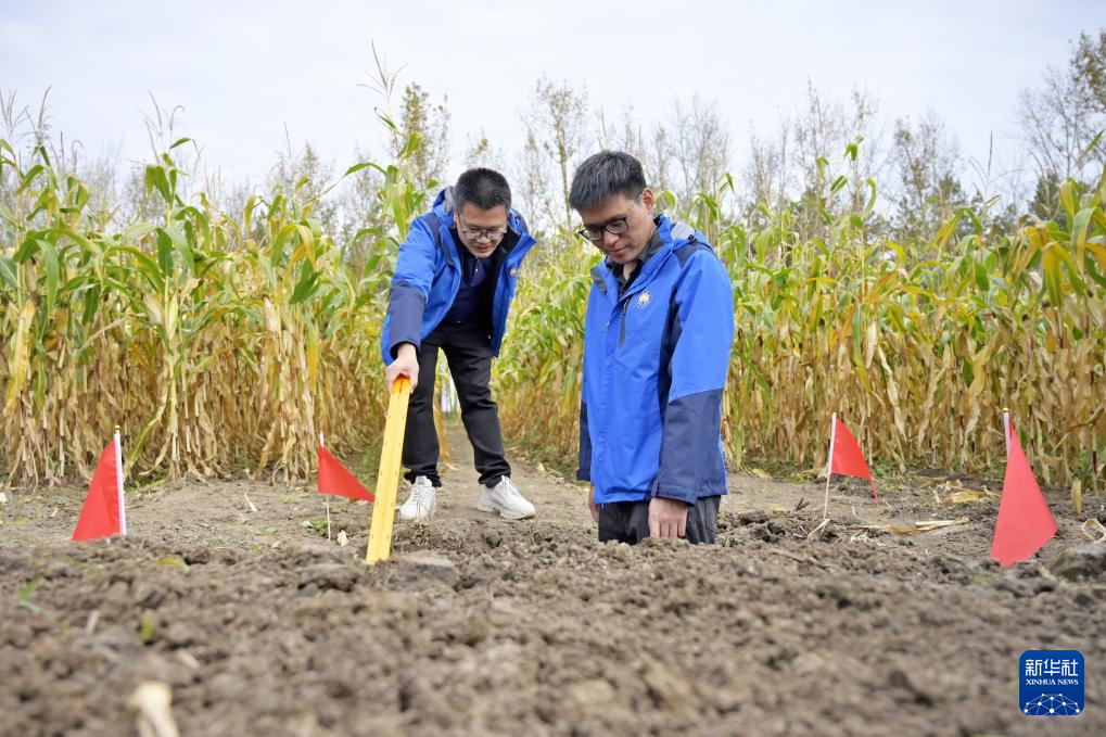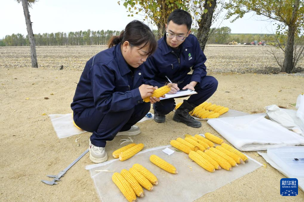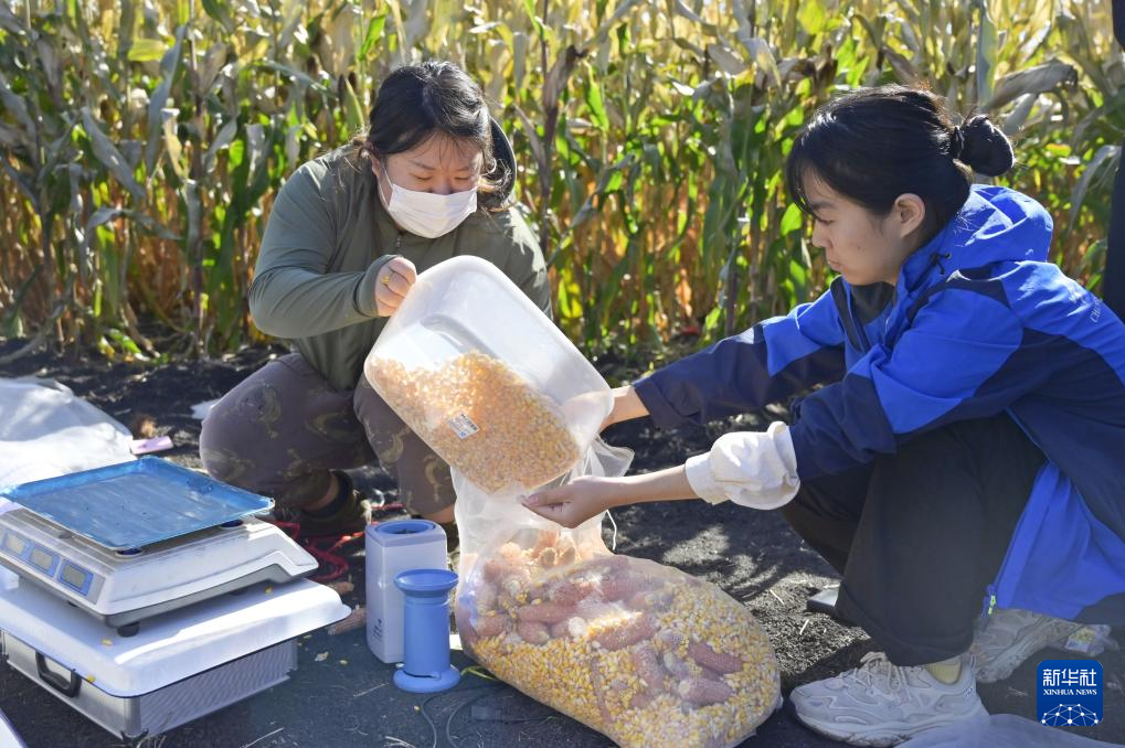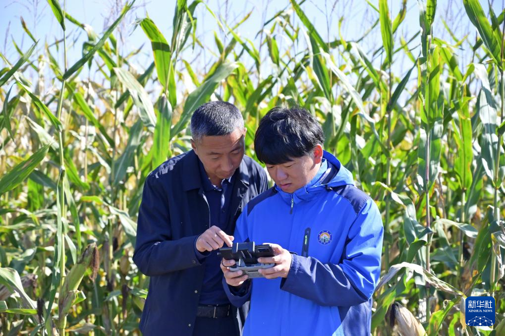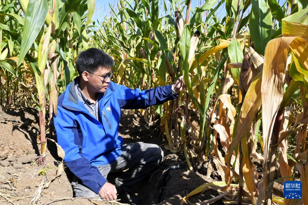 9月27日,研究人员在位于双鸭山市友谊县的友谊农场查看玉米长势。