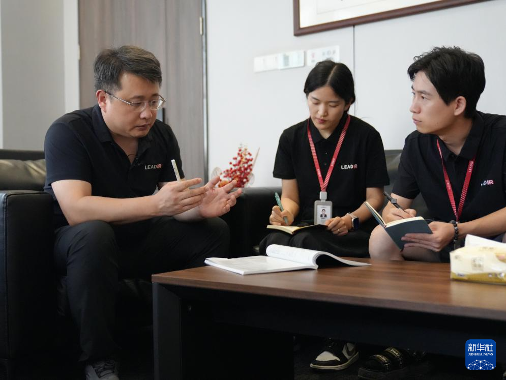 2024年8月22日,西安中科立德红外科技有限公司创始人刘伟(左)和员工进行业务研讨。