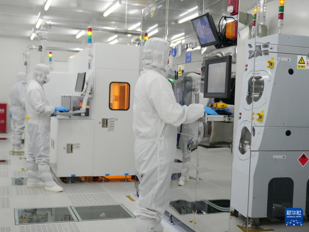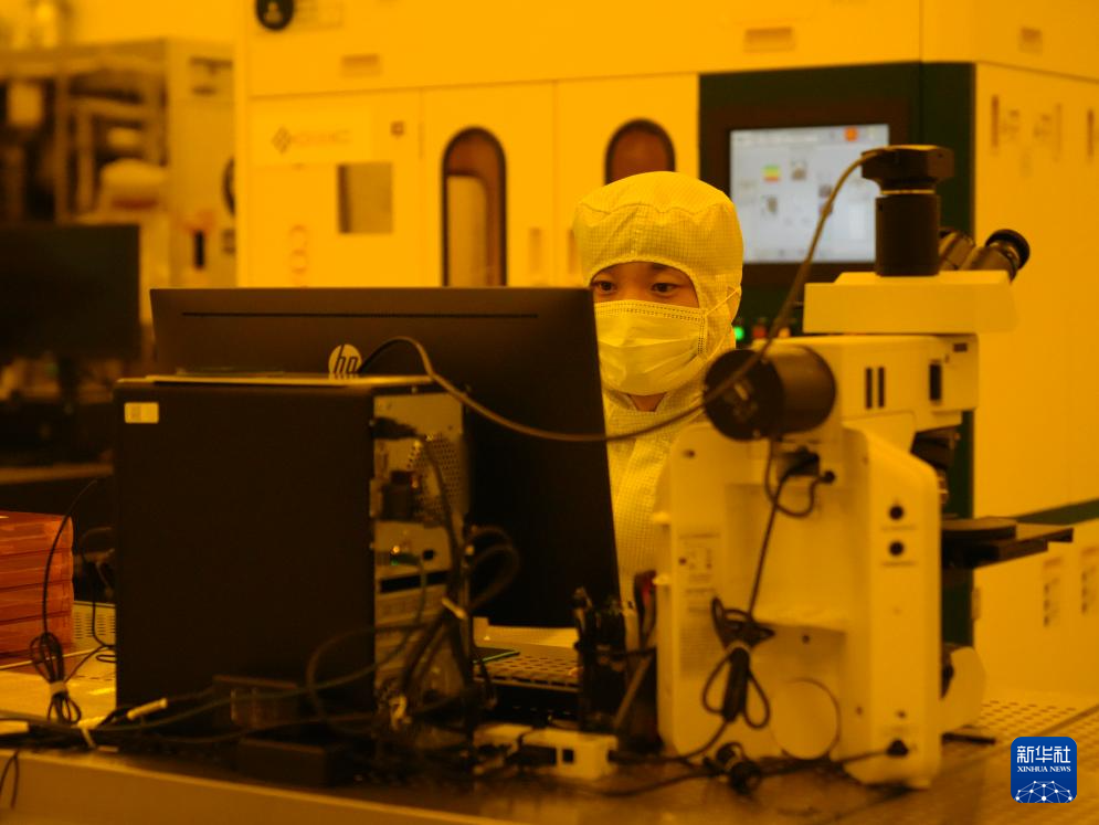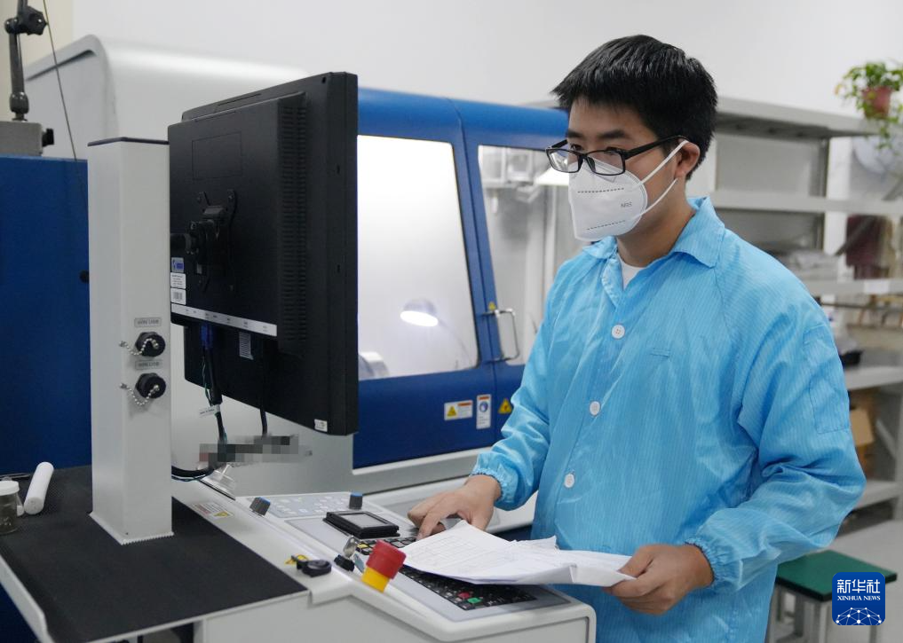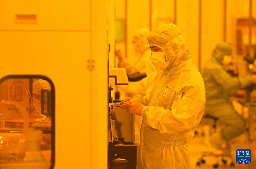 2024年8月22日,在西科控股旗下的陕西光电子先导院,技术人员在先进光子器件工程创新平台黄光区监测精密机械设备运行情况。