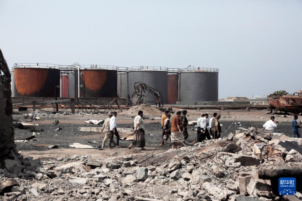 9月30日,在也门荷台达省荷台达市,一名男子走过被以色列空袭摧毁的储油罐废墟。