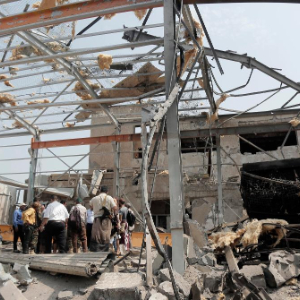 9月30日,在也门荷台达省荷台达市,工作人员检查被空袭摧毁的荷台达港发电站。