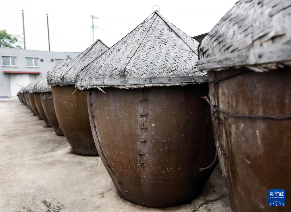 9月29日拍摄的六必居酱缸上的岁月印记——“锔子”。