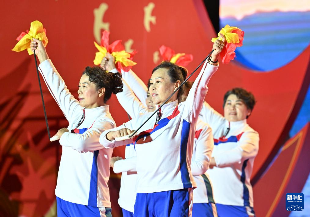 10月1日,新疆生产建设兵团第十二师的职工表演健身舞蹈。