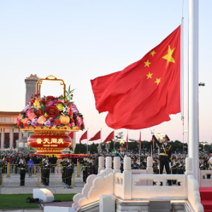 10月1日清晨,隆重的升国旗仪式在北京天安门广场举行,庆祝中华人民共和国成立75周年。