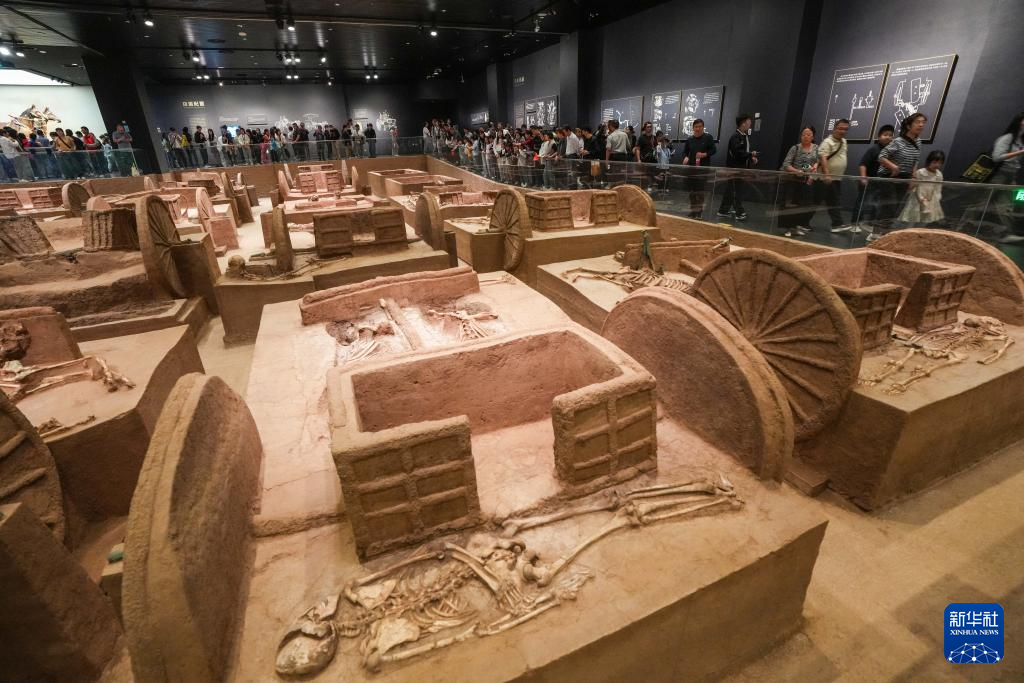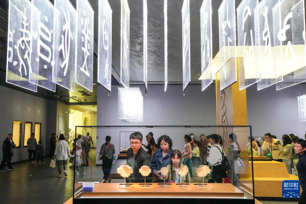 10月1日,游客在河南省安阳市殷墟博物馆新馆参观。