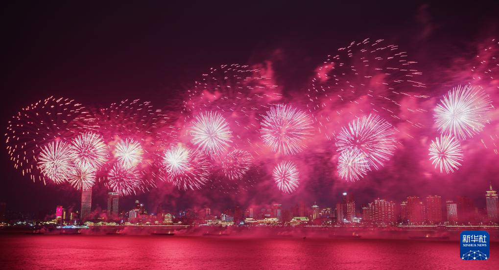 这是10月1日拍摄的2024年江西省南昌市国庆烟花晚会。