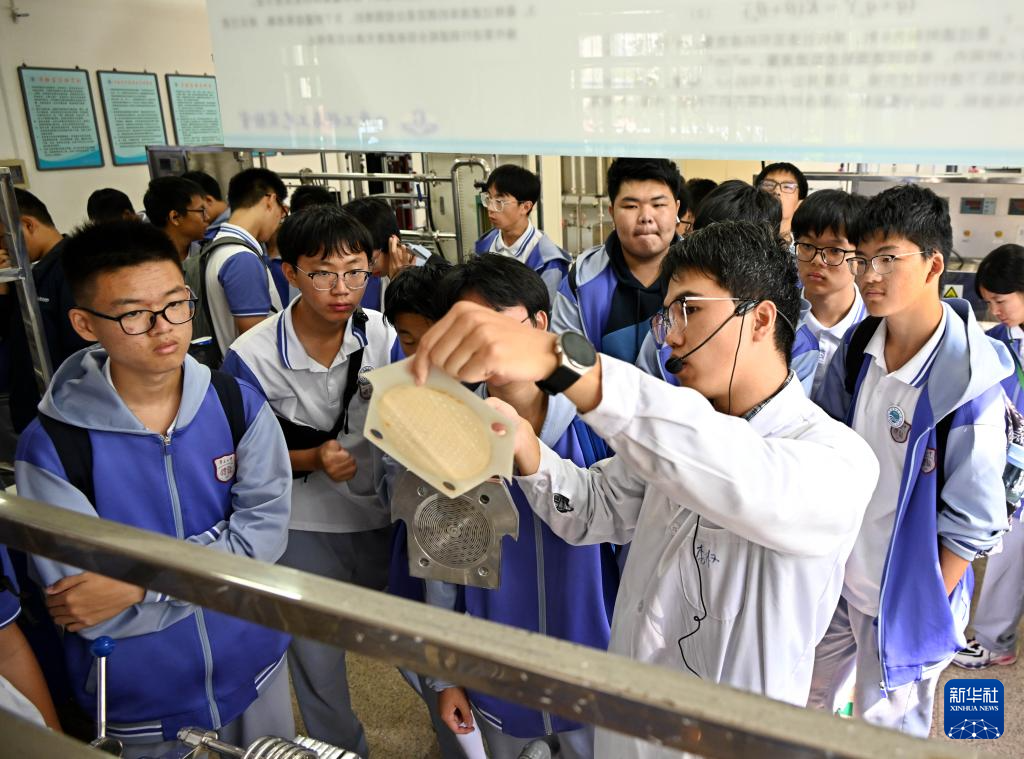 10月1日,中学生在位于山东青岛的中国海洋大学参加研学活动。