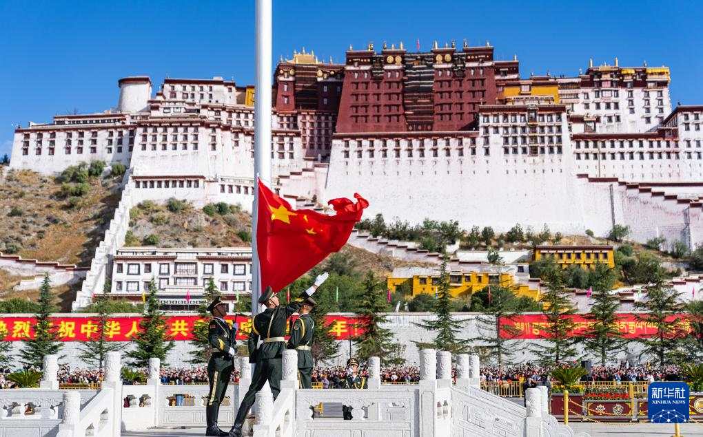 10月1日,拉萨市布达拉宫广场举行升国旗仪式。