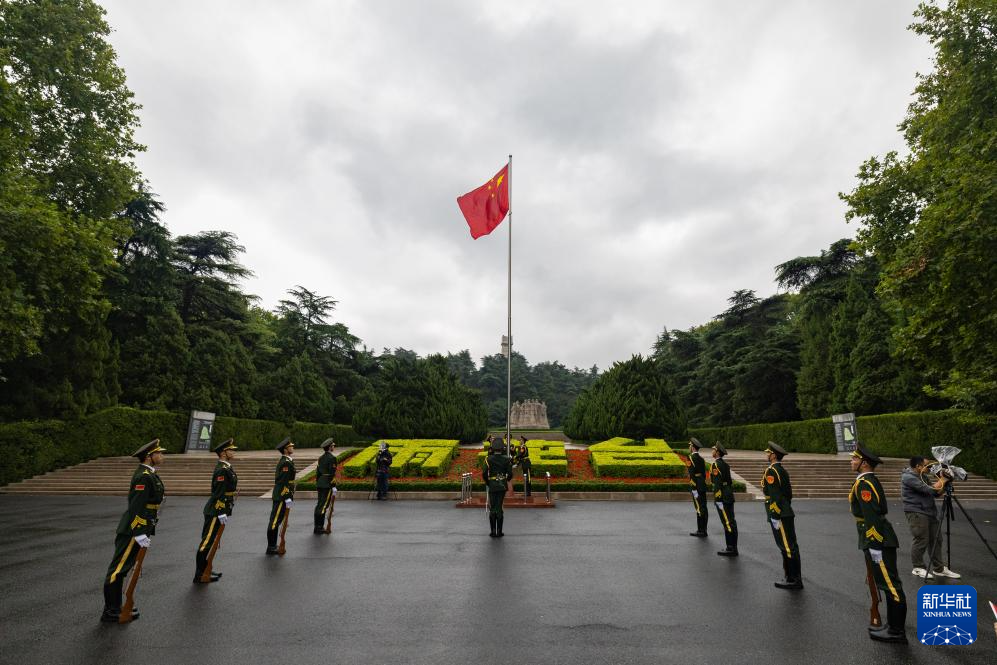 10月1日,南京雨花台烈士陵园举行升国旗仪式。