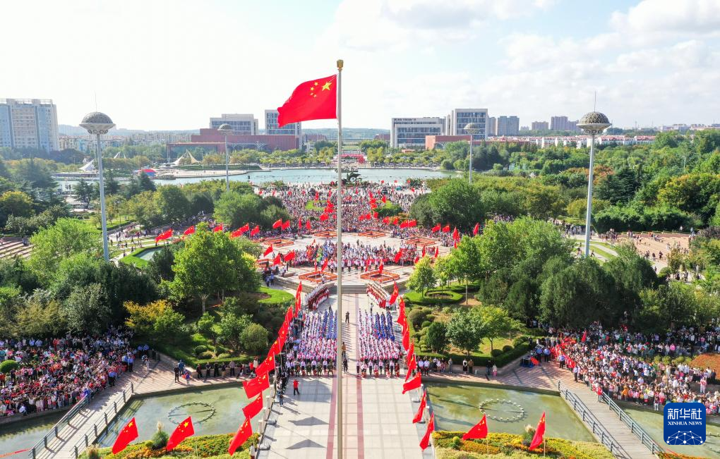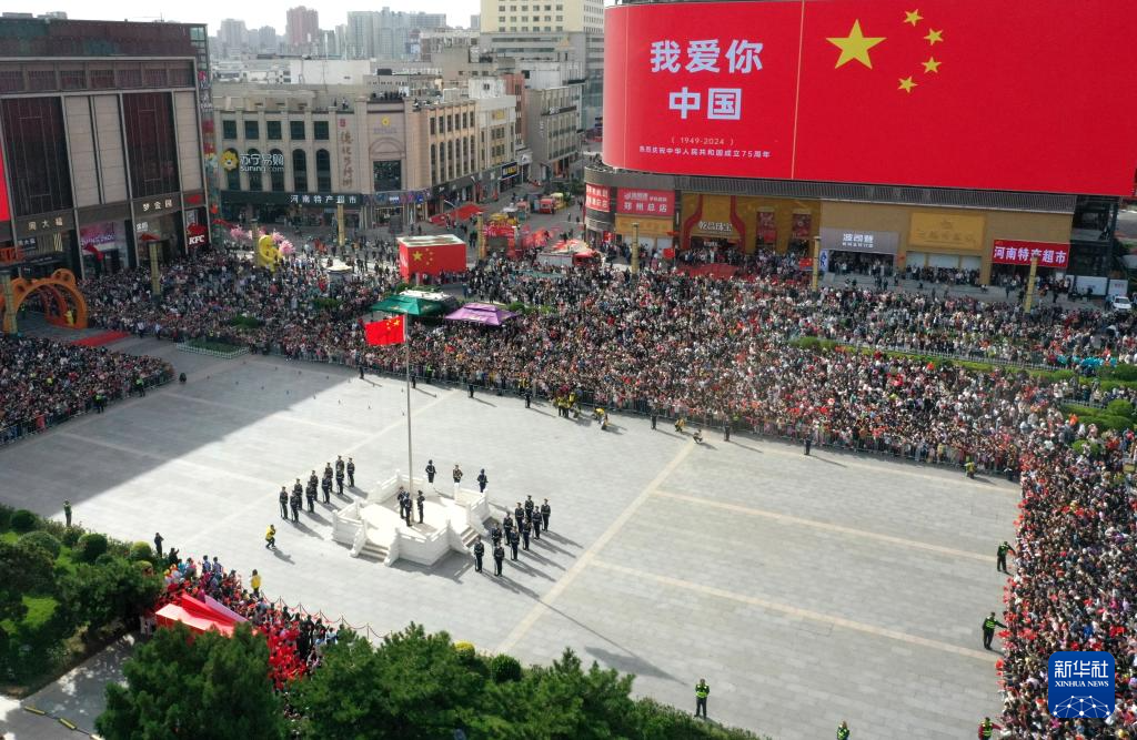 当日,各地举行升国旗仪式,庆祝新中国75周年华诞。