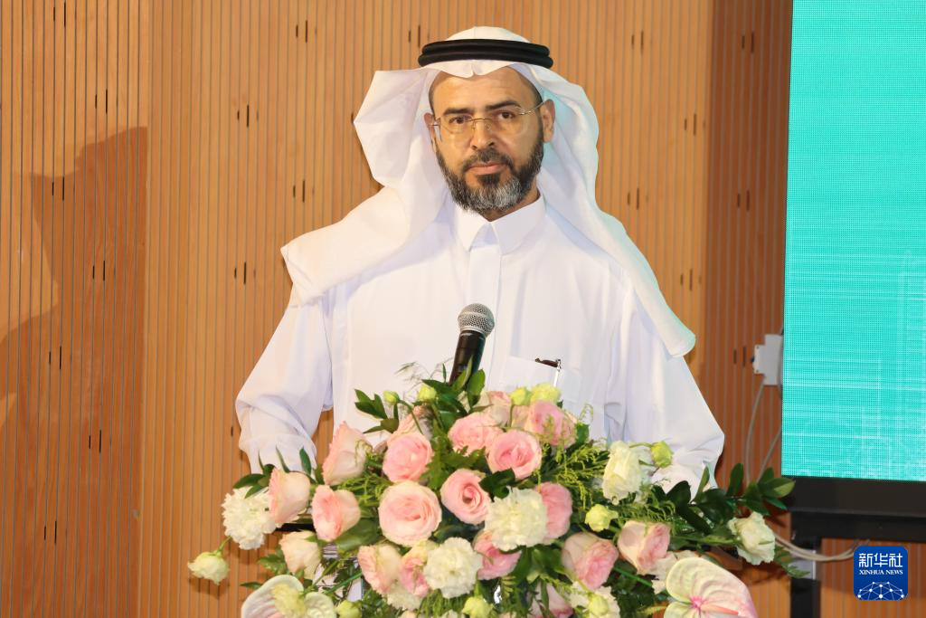 9月30日,在沙特阿拉伯利雅得,苏尔坦亲王大学孔子学院沙方院长易卜拉欣·阿尔-杰姆拉斯在中沙文学沙龙上致辞。