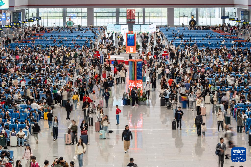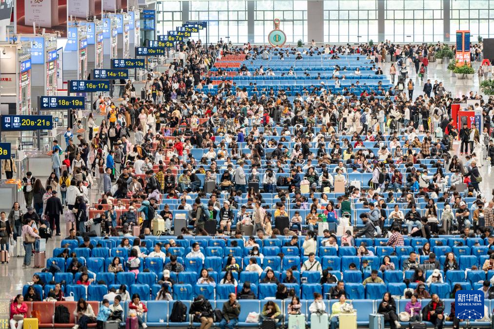10月1日,旅客在贵阳北站候车大厅准备乘车出行。