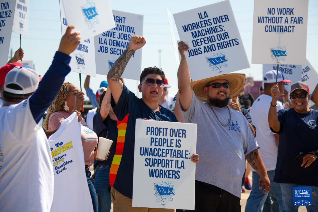 10月1日,美国东海岸和墨西哥湾沿岸30多个码头的数万名工人举行罢工,要求涨薪,反对港口机械设备自动化。