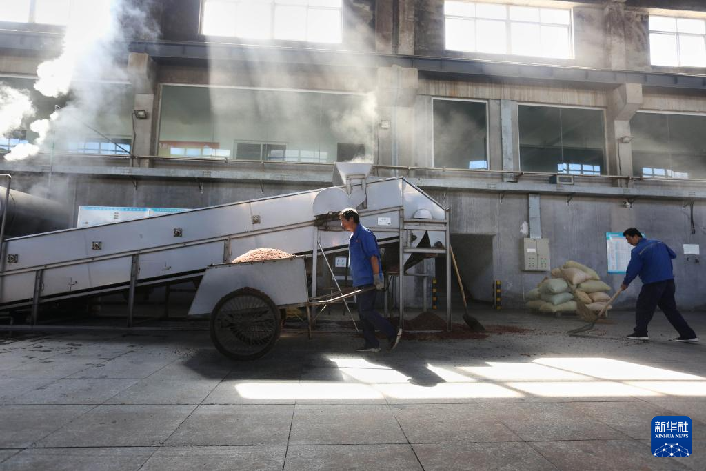 10月3日,工人在山东省邹平市的一蒸酒车间忙碌工作。