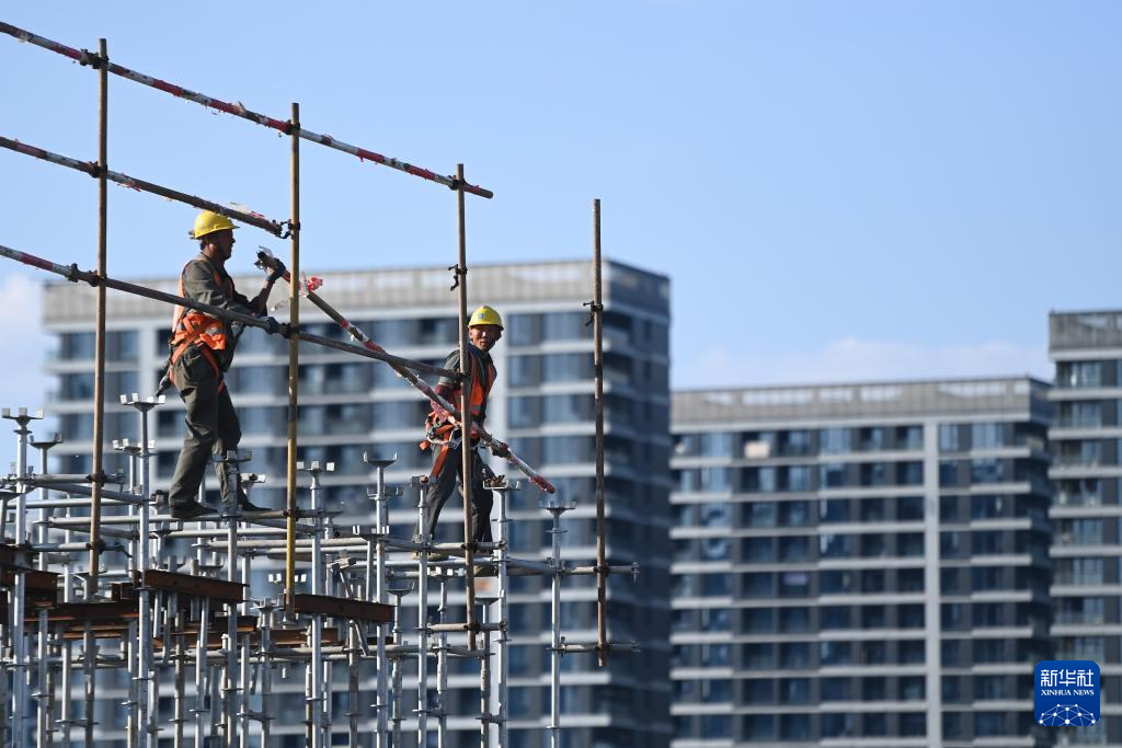 10月3日,中建三局的建设者在海口市的海南中心项目工地施工。